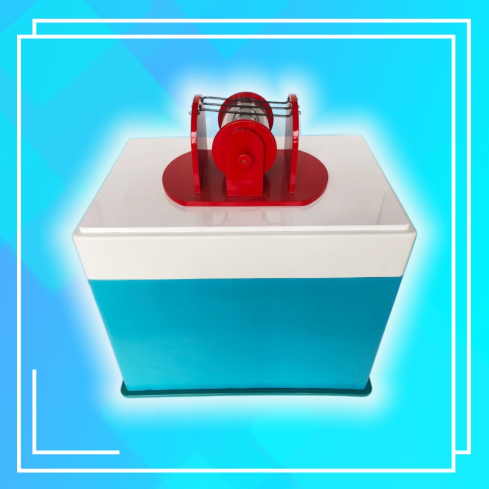 3、按下按鈕,觀察圓筒內水運動形成的現象。該展品主要展示了漩渦的形成。