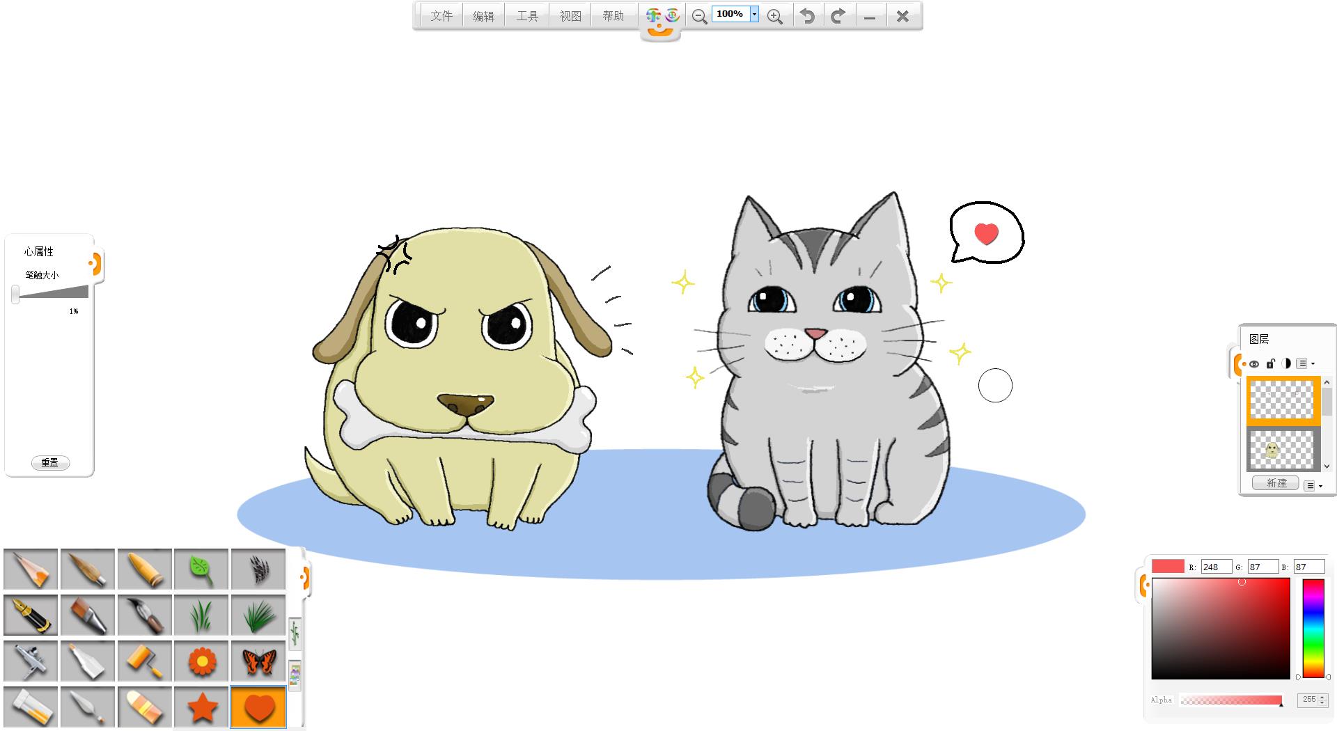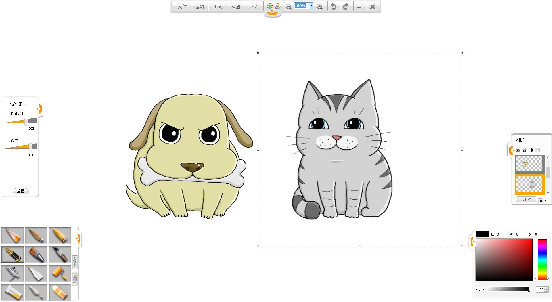 13.將導入的小貓小狗調整至合適大小。