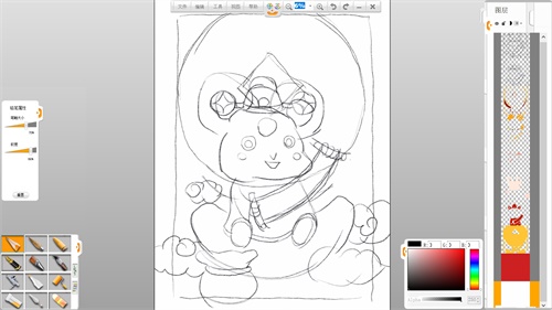 2、新建圖層,降低上一圖層的透明度,使用鉛筆畫出盡量流暢準(zhǔn)確的線稿;