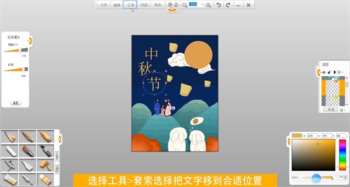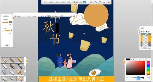 選擇工具>文本分別寫出中秋節(jié)三個(gè)字