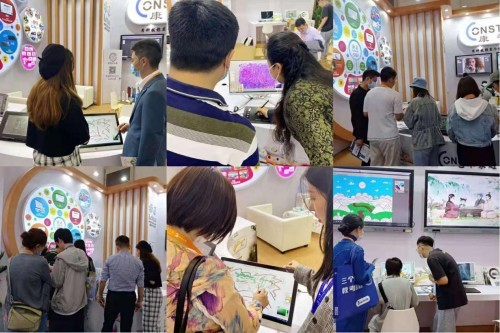 觀眾參觀康智達(dá)樂畫展位,數(shù)字媒體相關(guān)專業(yè)的工作人員積極接待,認(rèn)真解答問題
