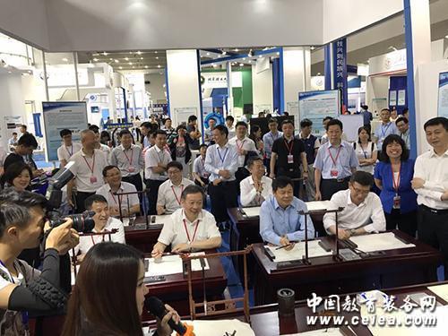華南師范大學智慧教育裝備產(chǎn)學研基地-廣視通智慧書法教室亮相第二屆科交會深受部省廳市各級領(lǐng)導認可