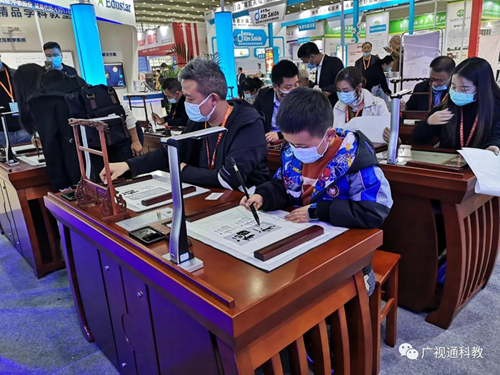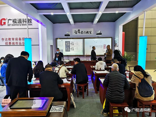 智慧書法教室備受關(guān)注,吸引了眾多觀展嘉賓駐足體驗(yàn)