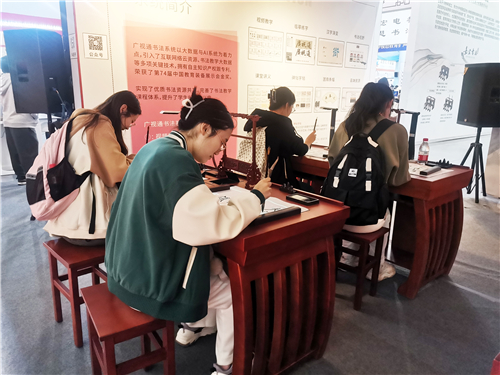 “智慧書法教室”,引發不少參觀者駐足體驗�!爸腔蹠ń淌摇币劳猩詈竦臅ㄎ幕滋N、憑借豐富的書法資源、強大的功能、卓越的體驗感,得到現場嘉賓及觀眾的高度贊賞。