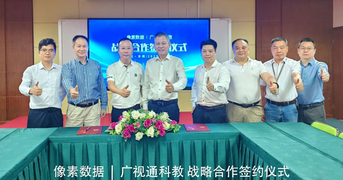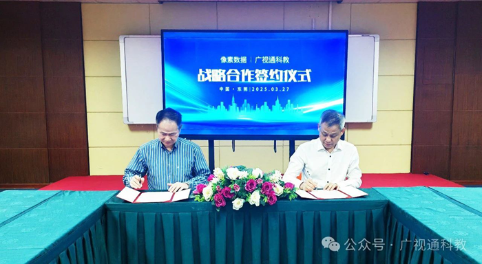 2025年3月27日下午,廣東廣視通科教設(shè)備有限公司(以下簡稱“廣視通”)與廣州像素數(shù)據(jù)技術(shù)股份有限公司(以下簡稱“像素數(shù)據(jù)”)戰(zhàn)略合作簽約儀式在廣視通總部二樓會議室舉行。像素數(shù)據(jù)董事長王端、廣視通董事長陳登貴等出席儀式。
