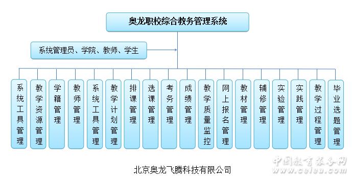 隨著我國學校教學體制改革的發展,更加體現出以人為本的教育方針政策。學生自主地選擇專業及專業方向、課程的選修機制、實驗預約、成績審核、學分制等管理方式的改革向傳統的管理軟件提出了新的挑戰。基于這種廣泛的需求。在充分綜合各職業教育特點的前提下,在多年深入研究的基礎上,奧龍推出了一整套能夠適應新的教學體制、能夠最大程度滿足職業院校現代化管理要求的綜合教務管理系統。奧龍綜合教務管理系統涉及到學生從入學到畢業的全過程管理,包括學籍管理、教學計劃、開課/排課、選課、成績管理、實驗管理、畢業設計及教學質量監控等多個環節。系統模塊包括系統工具、教學資源、學籍管理、教學計劃、開課管理、智能排課、選課、考務、成績管理、畢業設計、開放性實驗室、畢業資格審查,畢業環節管理,教學質量監控、教材管理等十余個子系統,適用于學校教務管理部門對學生從入學到畢業離校的全過程管理。