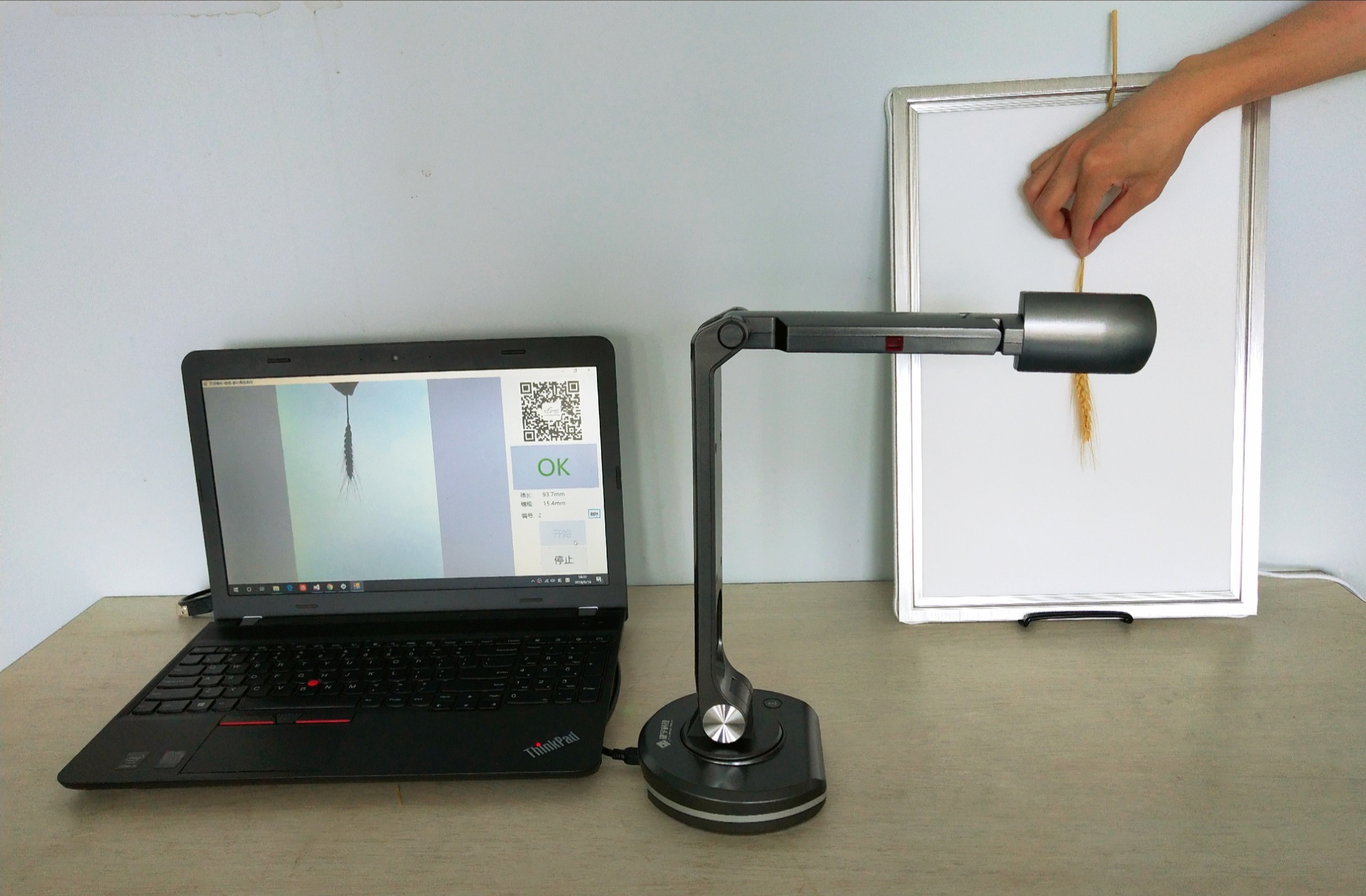 產品詳細介紹一、用途 作物的穗長、穗粗、莖粗、莖葉夾角,是作物表型的基本參數,其人工測量獲取工作繁重。本系統利用機器視覺智能識別技術來高效獲得精準的測量結果,為育種選材提供依據。 二、主要技術指標 1、用自動對焦的大景深800萬像素拍攝儀成像,由軟件自動識別計算。 2、★可自動測量水稻的穗長、莖粗、莖葉夾角參數,及小麥、谷子和高粱等的穗長、穗粗。 3、★穗子放穩后自動觸發識別,單穗自動測量≤2秒(最快可測30個穗長/分鐘)。也可外接條碼槍或鍵盤輸入樣品編號來觸發拍照測量。 4、穗長重復測量誤差≤±0.75mm、莖粗重復測量誤差≤±0.3mm、莖葉夾角重復測量誤差≤±1°。 5、設置參數帶有記憶,可重用。可自動去除稻谷芒長的干擾。 6、可設置測量界限值,語音自動報告篩選識別結果(穗長、莖粗、莖葉角過界報OK、不過則報NG)。 7、可存上萬張圖片及其對應的數據,并無線上網來遠程發送圖片、結果數據。 三、標準配置 1、SC-K水稻麥穗穗長-莖粗-莖葉角測量儀軟件U盤及軟件鎖1套 2、自動對焦的大景深800萬像素拍攝儀1臺 3、帶220V電源適配器的LED背光成像裝置 1個 4、尺寸標定板1塊 5、背光燈板支架1付 備注: 1、本技術標書中打★款項必須響應,否則為重大偏離。 2、本產品需使用電腦,推薦:品牌電腦(酷睿i5九代以上CPU/8G內存/無線網卡,4個以上USB2.0口,Windows 10完整專業版或旗艦版)。 |