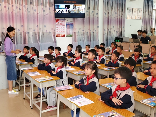 來自廣西柳州的優秀教師團不遠千里,來到廣東肇慶市洽水鎮中心小學,在課堂上聲情并茂地為學生授課演講,向當地的教學團隊們展示了新穎的分組授課、啟發式學習等教學模式,臺下學生們排排坐,正享受著老師帶來的美妙的學習時光。