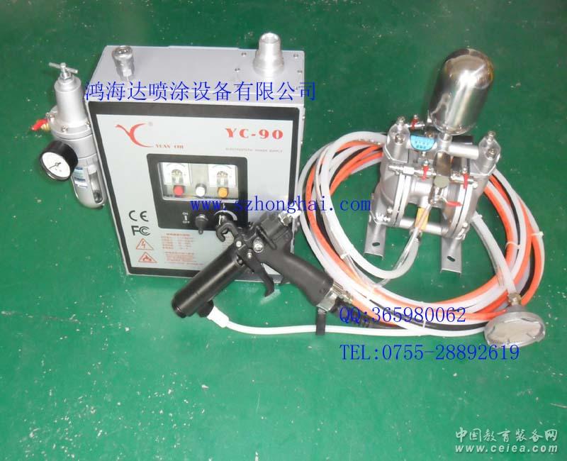 產品詳細介紹 臺灣YC-90元麒新型手持液體靜電噴槍是目前市面上最廣泛使用的液體噴槍;元麒靜電噴槍符合現有的市場經濟,噴槍對涂料參數要求低,對工件包覆均勻,操作簡單方便。標準配置:靜電主機壹臺、噴槍壹支(含涂料管、靜電線、空氣管、噴嘴)、氣動隔膜泵浦壹臺。 噴槍賣點及優點: 1、噴槍重量僅有470克,為世界上最輕的噴槍。 2、依人體工學設計,輕巧,好握,順手好操作。長時間作業,不容易覺得疲勞。 3、噴幅調整閥置于噴槍的左側,讓使用者好操作。 4、采用新型專利字號75875高霧化噴嘴,可提高生產力及滿足高品質涂裝表面的要求。 5、撞針及閥座采用耐磨鎢鋼,可延長使用壽命。 6、槍身采用耐高壓電的材質。手把采用低阻抗的復合材料。槍身結構較一般設計長1公分,有效減少涂料回包現象。 7、安全電路設計,操作錯誤或發生異常電壓、電流時,電路保護系統會快速自動斷電、放電及蜂鳴器示警。提高操作安全性。 8、故障率低,維修零件便宜,維修更換零件簡單化。