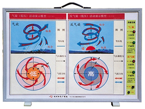 本產(chǎn)品配合中學(xué)地理學(xué)科講授《常見(jiàn)的天氣系統(tǒng)》—?dú)庑?低壓)和反氣旋(高壓)系統(tǒng)時(shí)作演示用。