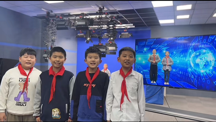 藍絲帶融媒小記者正在“美達光影空間”錄制最新一期《數字校園體驗官》。