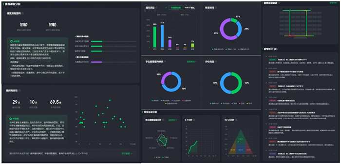 過去,傳統(tǒng)教研模式依賴主觀經(jīng)驗(yàn)和片段式觀察,難以實(shí)現(xiàn)常態(tài)化指導(dǎo)。而AI智能反饋系統(tǒng)突破了這些局限,它能記錄教師的每一次提問、走動(dòng)軌跡和互動(dòng)瞬間,生成實(shí)時(shí)反饋報(bào)告,并提出教學(xué)改進(jìn)建議。這種精準(zhǔn)、多維的課堂數(shù)據(jù)分析,使教研活動(dòng)更具靶向性。為老師們提供了前所未有的反思視角和改進(jìn)方向,幫助他們優(yōu)化教學(xué)表現(xiàn),提升課堂效果。
