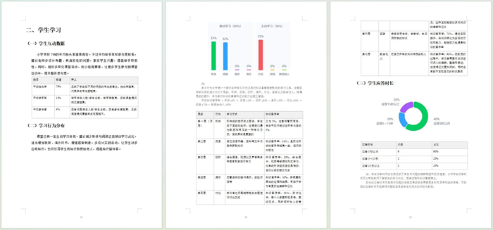 課后,課堂智能反饋系統(tǒng)化身“AI教研員”,識別師生互動(dòng)等關(guān)鍵片段,生成實(shí)時(shí)的反饋報(bào)告,并提出AI教學(xué)建議。精準(zhǔn)、豐富、多維的課堂數(shù)據(jù)分析,幫助教師及時(shí)反思教學(xué)表現(xiàn),不斷優(yōu)化改進(jìn)。