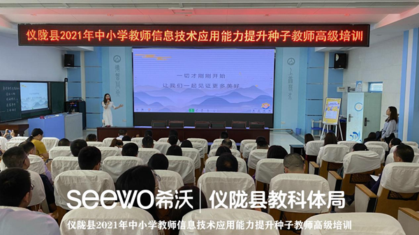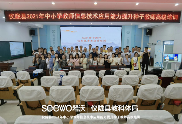 實施方案》、《教師教育振興行動計劃(2018—2022年)》國家政策等相關要求,進一步加強儀隴縣中小學教師信息化教育教學技能培訓,引領帶動全體教師將現代信息技術有效運用于教育教學中,促進信息技術與學科教學深度融合,提升教育教學質量。5月28—30日,由儀隴縣教育科技和體育局主辦,儀隴縣電教教儀站、儀隴縣教師進修校承辦,希沃教育研究院協辦的“儀隴縣2021年中小學教師信息技術應用能力提升種子教師培訓”在南充市儀隴縣濱江小學成功舉辦。本次高級培訓為期三天,全縣共有150多名信息化種子教師參加培訓。