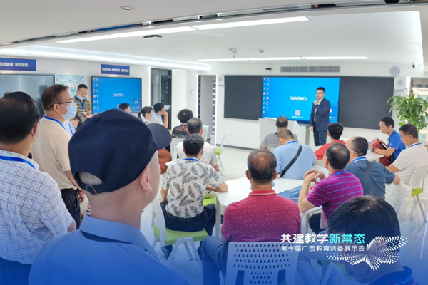 開展首日,廣西省南寧市人民政府副秘書長蒙文虎等領導蒞臨希沃展位,體驗了希沃多款產品,在給與高度評價的同時,也給到了諸多方向性建議,為希沃未來開拓更廣闊的教育版圖提供了思路。7月10日,來自自治區各區縣的500位專家和教研員一行,也參觀了希沃易課堂及錄播教室方案,對方案的可落地應用性進行了肯定。