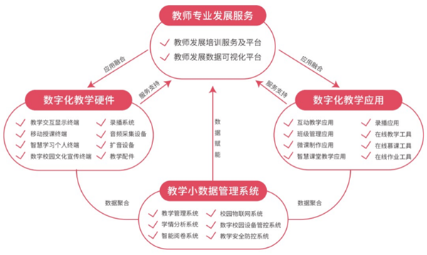 希沃以教學(xué)硬件設(shè)備為基礎(chǔ),深化教學(xué)應(yīng)用體系,打通教學(xué)環(huán)節(jié)模塊,對(duì)教學(xué)小數(shù)據(jù)進(jìn)行無(wú)縫采集,最后通過(guò)可視化呈現(xiàn)、分析小數(shù)據(jù),輔助教學(xué)管理決策,助力教學(xué)優(yōu)化,幫助教師實(shí)現(xiàn)專業(yè)發(fā)展。