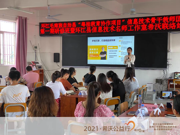 此外,為了提升環(huán)江毛南族自治縣教師信息技術(shù)素養(yǎng)能力,搭建促進(jìn)青年教師專業(yè)成長(zhǎng)以及名師自我提升的發(fā)展平臺(tái),環(huán)江毛南族自治縣教育局等還聯(lián)手希沃著力打造了一支集教學(xué)、科研、培訓(xùn)等職能于一體有成就、有影響的高層次信息技術(shù)團(tuán)隊(duì)。
