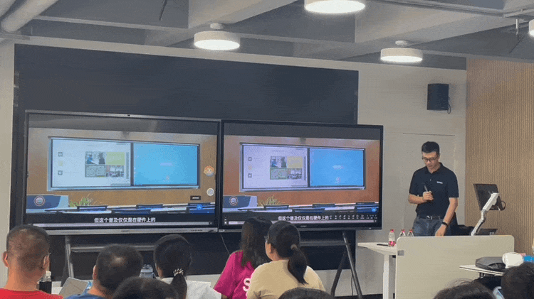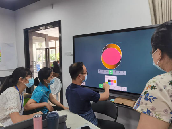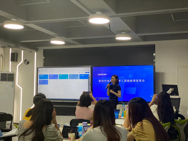 在培訓現(xiàn)場,希沃講師們采用小組研討的方式,通過活動式的教室布局與互動式教學,拉近小組與小組之間、參訓老師與講師間的距離。在培訓過程中,希沃客戶顧問許松柏向大家介紹并操作演示了希沃旗下的智慧教室、小組研討教室、階梯教室、實驗實訓室、共享學習空間等多套軟硬件一體化智慧教學解決方案,引起與會者的廣泛興趣,老師們興致勃勃地進行了現(xiàn)場體驗與互動。其中涵蓋電容雙拼屏、高教紅外款、超短焦投影等多款硬件設施。