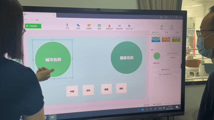 現(xiàn)場教師在體驗雙拼拖拽操作