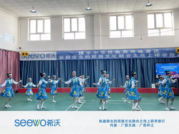 作為此次活動的協辦方,希沃充分發揮自身技術,提供全程技術與設備支持,確保分會場直播活動順利進行。通過希沃錄播搭建南北不同民族文化的交流橋梁,將千里之外的三所民族小學連接起來,以“同步課堂”模式,齊聚在同一課堂上,讓學生通過線上平臺充分展示本地民族文化特色,同時學習了解異地民族文化特色,幫助學生拓寬視野,體驗絢爛多彩的民族文化魅力,促進各民族之間的溝通交流。