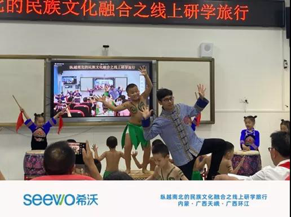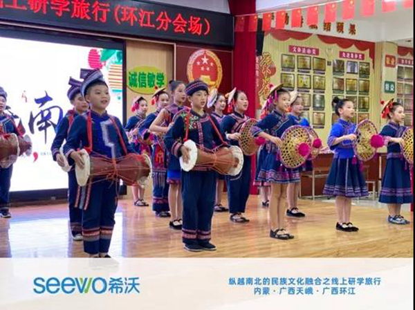為了積極響應《教育部關于加強“三個課堂”應用的指導意見》等相關教育政策,促進民族教育均衡發展,推動民族地區中小學信息技術教育水平提升,加強少數民族之間學生的民族團結教育,9月23日,希沃攜手內蒙古呼倫貝爾根河市阿龍山小學、廣西壯族自治區河池市天峨縣第六小學、廣西壯族自治區河池市環江毛南族自治縣第二小學共同舉辦“縱南越北的民族文化融合之線上研學之旅”活動。活動全程,希沃錄播全力提供技術支撐,借助信息化技術軟件設備,有效保障活動順利進行。