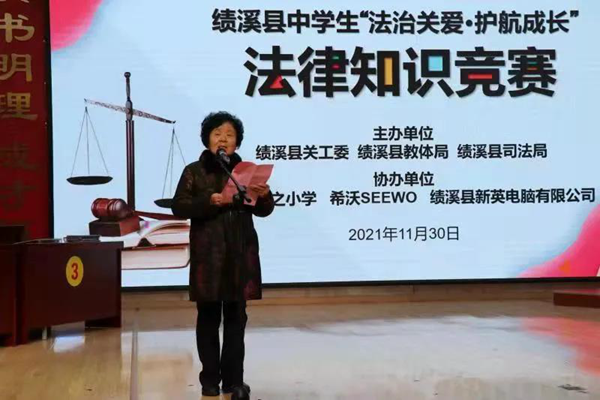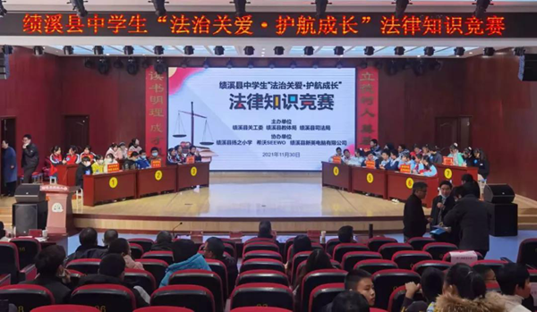 為進(jìn)一步加強(qiáng)全縣中小學(xué)生的法律啟蒙和法律常識(shí)教育,展示績(jī)溪縣第四屆“關(guān)愛(ài)明天,普法先行”青少年普法教育活動(dòng)成果。11月30日,績(jī)溪縣開展全縣中學(xué)生“法治關(guān)愛(ài),護(hù)航成長(zhǎng)”法律知識(shí)競(jìng)賽活動(dòng)。此次競(jìng)賽活動(dòng)由績(jī)溪縣教體局、縣關(guān)工委、縣司法局主辦,希沃提供技術(shù)支持,來(lái)自全縣11代表隊(duì),共計(jì)33名學(xué)生參加。