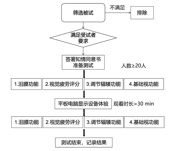 除了滿足核心的顯示參數(shù)外,在核心眼科指標流程中,需篩選20個以上用戶,記錄他們在觀看顯示產(chǎn)品前后的眼睛生理舒適度變化,從而判定平板電腦視覺舒適度等級。