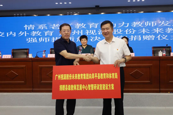 隨后,廣州視源股份未來教育集團(希沃)副總裁魏振水向河北阜平縣捐贈價值500000元的縣級教師發展中心智慧研訓室,通過硬件、軟件與教師培訓服務助力阜平教師專業發展。