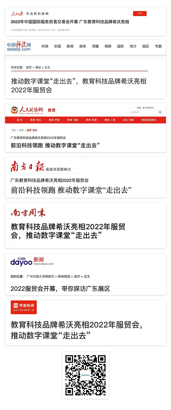希沃本次參展更是獲得中央、省、市主流媒體及重要媒體的關(guān)注報道,包括人民日報、科技日報、人民政協(xié)網(wǎng)、南方日報、南方周末、廣州日報、界面新聞等。