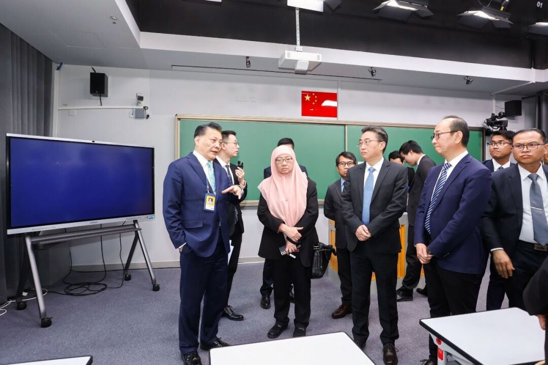 當(dāng)天下午,東盟各國教育官員一行首先參訪北京市第二中學(xué)經(jīng)開區(qū)學(xué)校,現(xiàn)場了解數(shù)字化在具體教學(xué)實(shí)踐中的應(yīng)用。從智能監(jiān)控中心、遠(yuǎn)程教室、化學(xué)實(shí)驗(yàn)室等場景,到安裝了希沃交互智能平板、電子班牌、電子畫框等硬件的智慧教室,北京市第二中學(xué)經(jīng)開區(qū)學(xué)校已經(jīng)把數(shù)字技術(shù)成功在運(yùn)用到了老師教學(xué)和學(xué)校運(yùn)營中,使東盟各國教育官員對中國數(shù)字化、信息化的教育管理模式有了深切感受。