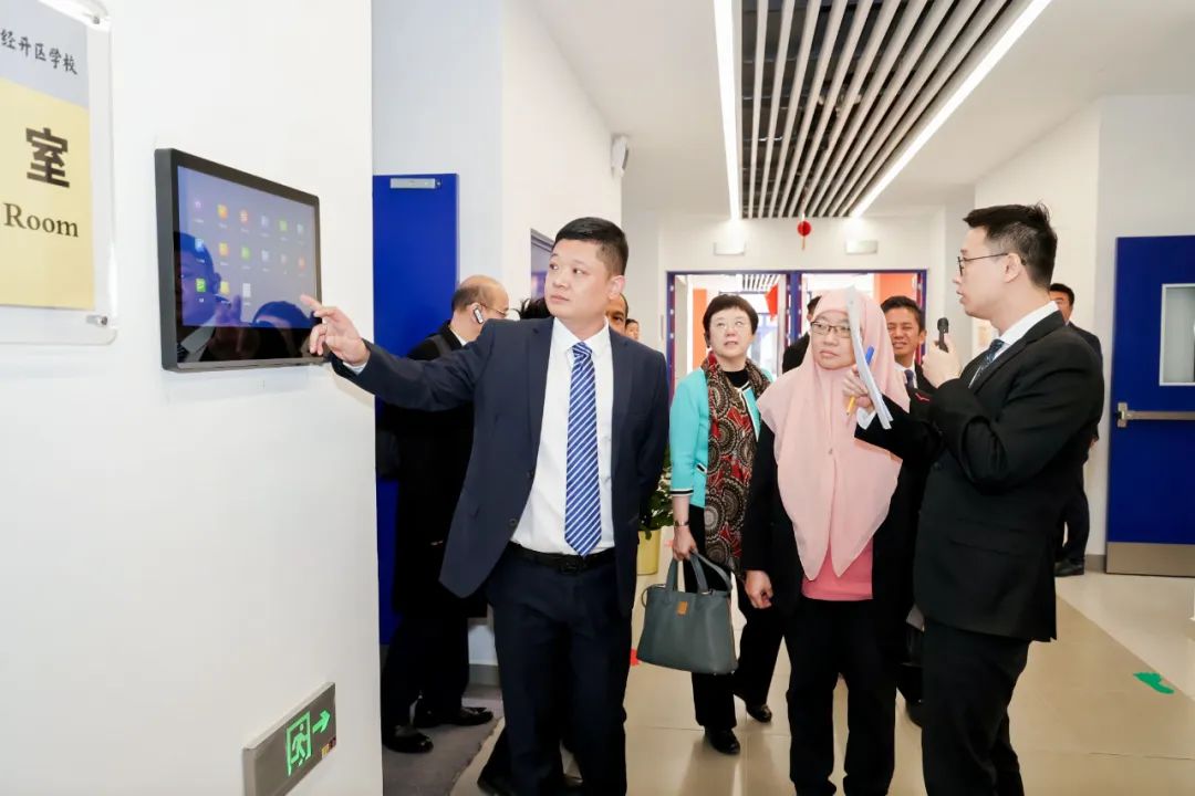 隨后,為了更全面的了解智慧教室等數(shù)字教育實(shí)踐場景中的軟硬件情況,東盟教育官員一行赴位于北京經(jīng)濟(jì)技術(shù)開發(fā)區(qū)的視源股份北京產(chǎn)業(yè)園參觀調(diào)研。