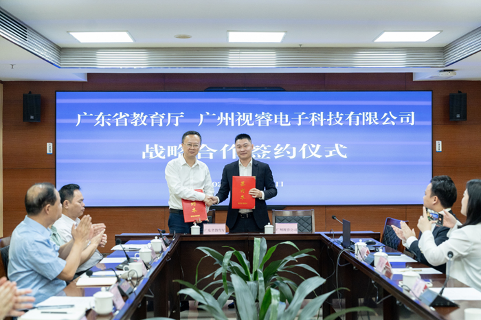 11月12日,廣東省教育廳與希沃簽訂戰略合作協議。廣東省委教育工委委員,省教育廳黨組成員、副廳長朱建華,廣東省教育廳基礎教育與信息化處處長趙琦,廣東省教育廳教育研究院副院長李海東,廣東省教育廳辦公室副主任張偉民,廣東省教育廳師資管理處三級調研員馬桂波,廣東省教育廳教育裝備中心三級調研員王穎,廣東省教育廳事務中心副主任李昶,廣州視睿電子科技有限公司(希沃)總裁張凌等出席簽約儀式。朱建華和張凌分別代表雙方簽約。