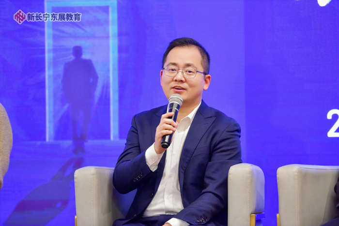第二場圓桌論壇邀請了政府、高校、企業代表,上海視熙智能科技有限公司總經理劉暢作為企業代表介紹了自研的教育行業大模型——希沃教學大模型目前在教育領域的相關技術創新及應用案例,同時也與在座其他成員針對人工智能教育的技術發展進行了展望。