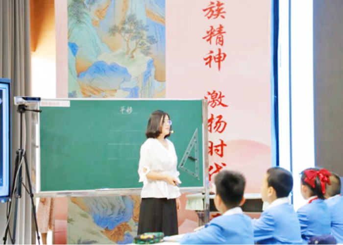 課例二:《平移》(執(zhí)教者:銀川市二十一小學(xué)湖畔分校-盧海香):創(chuàng)設(shè)“古建筑平移保護(hù)”真實情境,通過希沃白板5軟件中大雄寶殿平移視頻、古亭及船樓平移方案設(shè)計等任務(wù)鏈,引導(dǎo)學(xué)生掌握平移要素(方向、距離)及“關(guān)鍵點→對應(yīng)點→連線”的規(guī)范作圖方法,強化空間觀念與應(yīng)用能力。