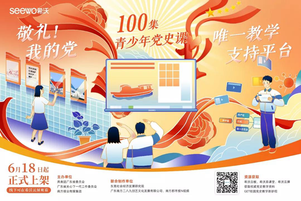 據了解,《敬禮!我的黨——100集青少年黨史課》分為革命篇、建設篇、改革篇、復興篇,以青少年喜聞樂見的形式闡述黨領導中國人民的偉大歷程和輝煌成就。希沃作為此優質黨史資源的唯一教學支持平臺,同步在希沃云屏、希沃白板、希沃易課堂中上架相關黨史課視頻。