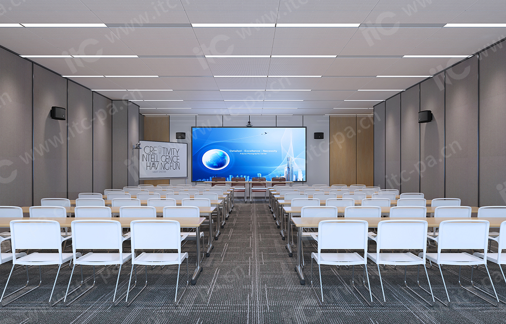 itc專業(yè)擴(kuò)聲系統(tǒng),語(yǔ)言清晰、無(wú)失真、聲壓余量充分、聲場(chǎng)分布均勻、無(wú)聲反饋嘯叫。