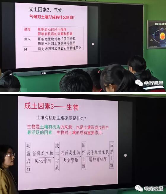 張老師帶領446班的孩子們來地理教室學習《土壤的形成》。