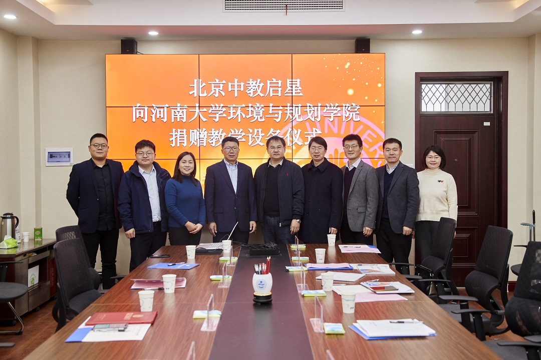12月2日,在八朝古都開封,中教啟星向河南大學環境與規劃學院捐贈教學設備儀式在該學院舉行,中教啟星總裁王天祥,教研中心總監王秋平,渠道部總監馬爭科,河南省銷售負責人楊秉奮,河南大學環境與規劃學院黨委書記鄭洪濤,執行院長、黨委副書記喬家君黨委副書記徐小軍,副院長潘少奇,地理科學系教師張廣花等領導出席了本次捐贈儀式。