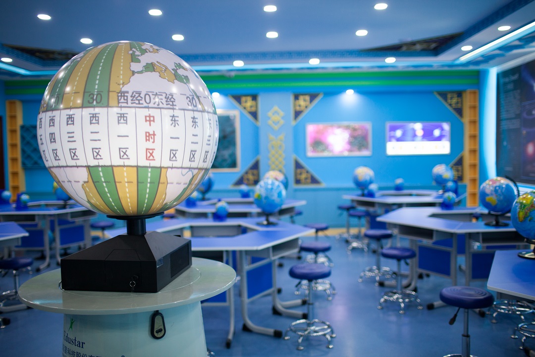 以“數(shù)字化”為主導(dǎo)、數(shù)字星球系統(tǒng)為核心,遵循教育部《中學(xué)地理專用教室建設(shè)規(guī)范》,配備常規(guī)教學(xué)類的交互地圖教學(xué)系統(tǒng);創(chuàng)新應(yīng)用類的虛擬現(xiàn)實VR教學(xué)系統(tǒng)、地理AR沙盤、全息教學(xué)系統(tǒng);實驗活動類的地理交互學(xué)具、地理綜合實踐套裝;并輔以教學(xué)通用設(shè)備以及環(huán)境創(chuàng)設(shè),能夠把地理課本上的知識更直觀、生動、全方位的精彩呈現(xiàn),讓學(xué)生打開傳統(tǒng)的思維模式,以一種更加生動活潑的方式學(xué)習(xí)地理,有利于教師教學(xué)活動的開展和學(xué)生學(xué)習(xí)效率的提高。