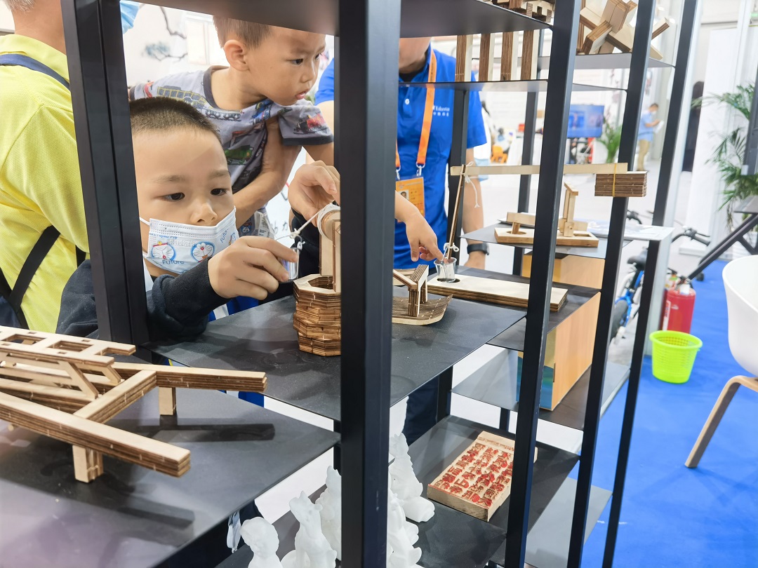 中教啟星參加本次服貿(mào)會(huì)中重點(diǎn)展示了勞動(dòng)教育的系列課程,如桔槔、轆轤井、踏碓等,并成為展區(qū)中最大看點(diǎn),吸引諸多大人小孩前來參觀體驗(yàn)。