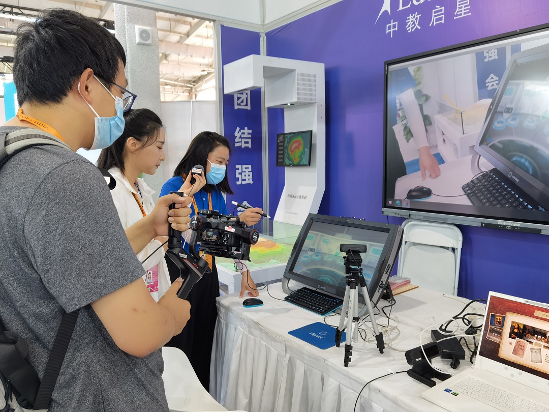 央視新聞“行走服貿(mào)會(huì)”系列報(bào)道記者也走進(jìn)中教啟星展區(qū),直播采訪并體驗(yàn)了勞動(dòng)教育課程、傳統(tǒng)文化體驗(yàn)套裝和地理AR盤。