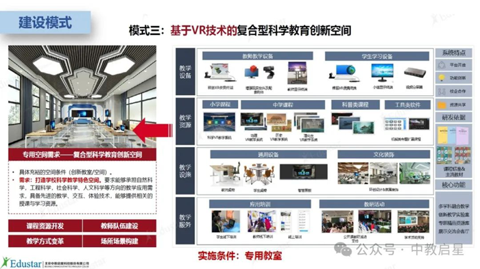 該模式面向打造復合型科學教育創新空間的需求場景,借助VR技術+多學科項目式學習等手段,達到強化學科核心素養的教學目的。通過創建多功能、跨學科的創新空間,支持綜合實踐活動和探究性學習,激發學生的創造力和探索精神。