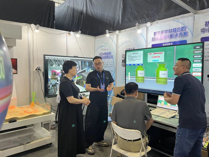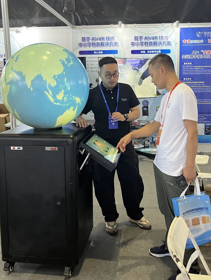 中教啟星作為教育裝備領域的領軍企業,憑借多年自研創新的數字化地理教室建設、VR技術輔助教學探索經驗,攜其數字化地理教室、科學教育VR創新教室解決方案精彩亮相本次展會,吸引眾多教育界同仁參觀體驗并獲良好的市場評價。