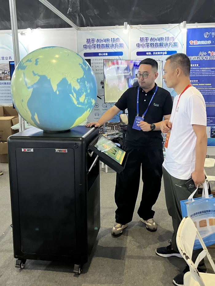 此次展示的數字化地理教室中,數字星球系統融合了球幕投影、多媒體交互、數字化資源等多種技術,將地球、宇宙等宏觀地理知識以動態、立體的形式呈現在球形屏幕上。教師能夠通過系統,全方位、多角度展示地球的地理現象、時空演化、大氣環流等知識,打破了傳統平面教學的局限,以極具直觀立體的視覺效果,激發學生對地理知識探索的熱情,助力他們更深入地理解宏觀地理現象和原理。