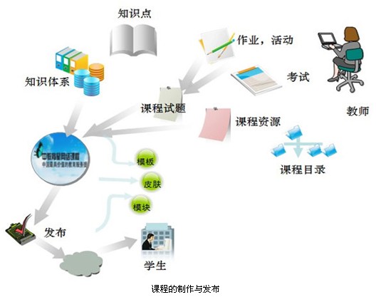 集成標準化的網絡課程制作系統,教師可非常方便地整合各類資源制作發布網絡課程,并應用于課程教學。平臺將組成課程的各項教學功能以模塊化形式劃分,通過教師自主選擇搭配整合形成完整的網絡課程,操作簡單,易于使用;同時提供教案編輯、試卷生成、課件制作等一系列易用實用的輔助工具,從而完美實現網絡課程的流程化制作。