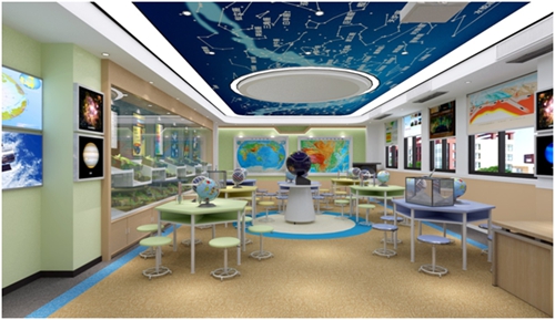 基于數字化與虛擬現實技術的創新型地理專用教室,通過數字星球系統、交互地圖教學系統、語音立體地形圖、地圖圖層學習箱、地理實驗活動套裝、地理全息教學系統、地理AR沙盤系統、寰宇地理VR教學系統、“地球的演化”沉浸式VR探索系統等專業設備可以動態立體地再現自然地理和人文地理的現象與過程,實現地理教學“從平面到立體”和“從靜態到動態”的跨越,為各種長時間、大尺度、多因素的自然和人文地理現象演變的展示提供了可能,利用數字化與虛擬現實技術,創設三維空間學習環境,能夠實現立體展示以及從全球、整體、綜合的角度探索宇宙空間環境和地球環境,可以讓學生真正參與到學習活動中。通過對客觀環境進行模擬,與實際學習情境高度融合,能夠全方位調動學習者的視覺、聽覺、觸覺等,給學生前所未有的學習體驗,利用沉浸式、趣味式、交互式的方法,讓學生真正的沉浸在地理環境之中去學習地理,在情景體驗中建構知識,提高教學效率,推動教學改革。