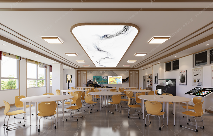 中教啟星歷史專用教室由空間規劃、方案模塊、課程體系及師資教學應用培訓構成。