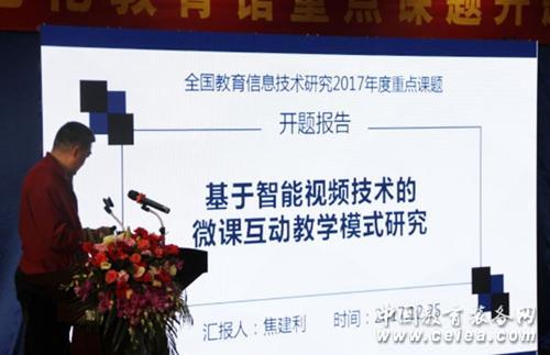 總課題組組長(zhǎng)-華南師范大學(xué)信息技術(shù)學(xué)院焦建利教授向全場(chǎng)作開題報(bào)告
