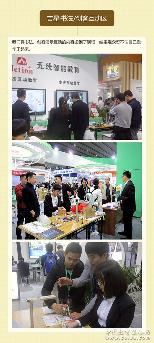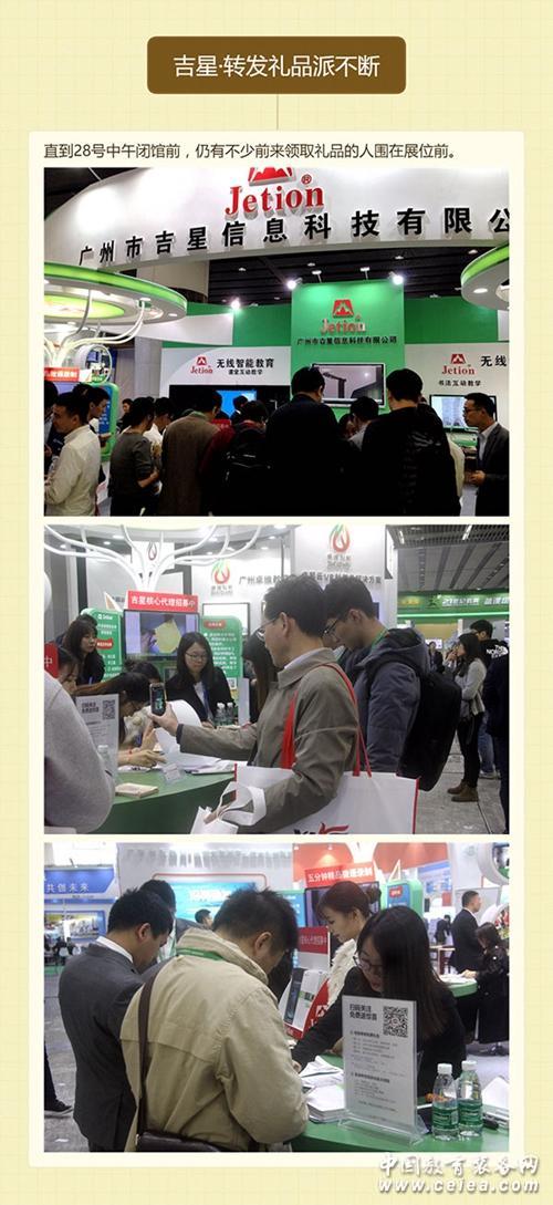 從26號(hào)9點(diǎn)開展,到28號(hào)中午11:30閉展,期間,在5.1館A005展位的吉星,帶著無(wú)線視頻展臺(tái)/無(wú)線微錄儀、各種學(xué)科的課堂互動(dòng)應(yīng)用方案、神秘的全新升級(jí)產(chǎn)品、免費(fèi)派送的各式禮包,忙碌著和前來(lái)參觀指導(dǎo)的新老朋友們愉快相見。
