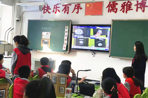 通過吉星智慧課堂互動教學系統,劉老師任意調取四組學生的作品畫面大屏幕對比教學,小朋友之間相互展示自己的作品并分享自己的制作思路。